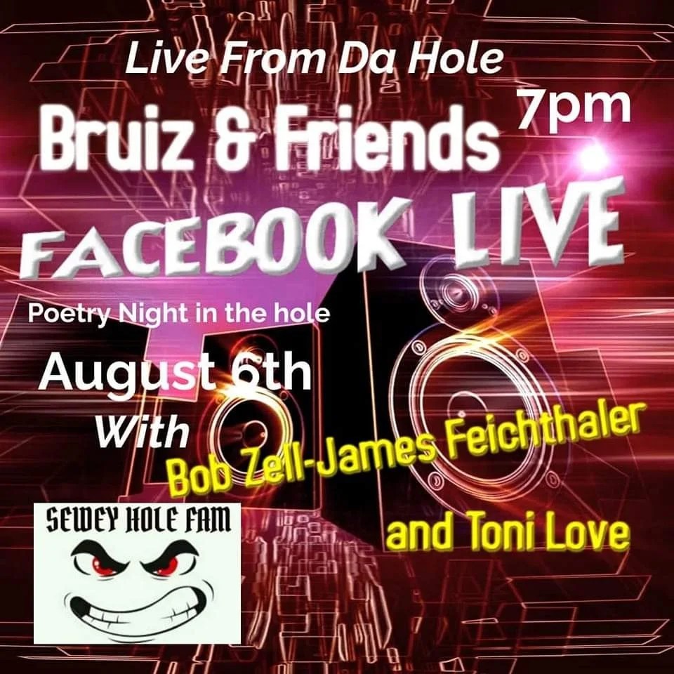 Sewey Hole Family presents Bruiz and Friends , a Live poetry reading filmed at the infamous Pen and Pencil club in Philadelphia. The event including poetry readings from James Feichthaler, Bob Zell and myself, Toni Love will ONLY be viewed on the Facebook page of Keith Outlaw so visit the Event page to access the link to watch us live.